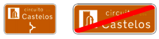 Os sinais turístico-culturais também ganharam novos membros. Indicam a direção do circuito ou rota através do esquema gráfico de uma rotunda e podem também apontar o local onde um circuito termina.
